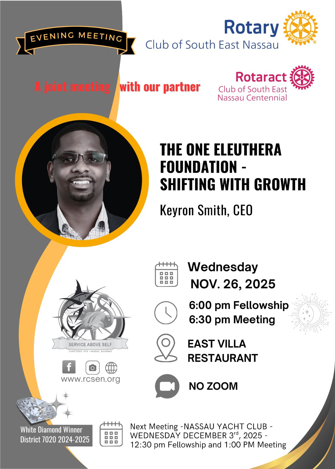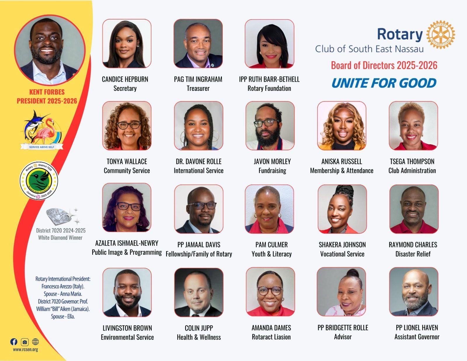 Congratulations to the incoming Chairman Don Williams , and directors PP Jamaal Davis, PP Peter Goudie, and Nadene Charlton ( wife of PP Stanford Charlton) on their appointment. Rotary Club of South East Nassau to the World!