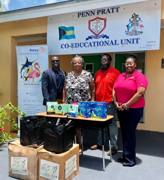 The Rotary Club of South East Nassau (RCSEN) supported the Rotaract Club of South East Nassau Centennial's (RCSENC) successful Feminine Product Drive, an initiative that delivered much-needed supplies to the Penn Pratt Co-Education Unit. RCSEN's Director of Public Image, Azaleta Ishmael-Newry, learned of the school's need for ongoing support for its female students. She reached out to RCSENC President Eboni Johnson, who committed to the project although they had recently held a feminine drive a few months prior. By August, the school received the gifting.
