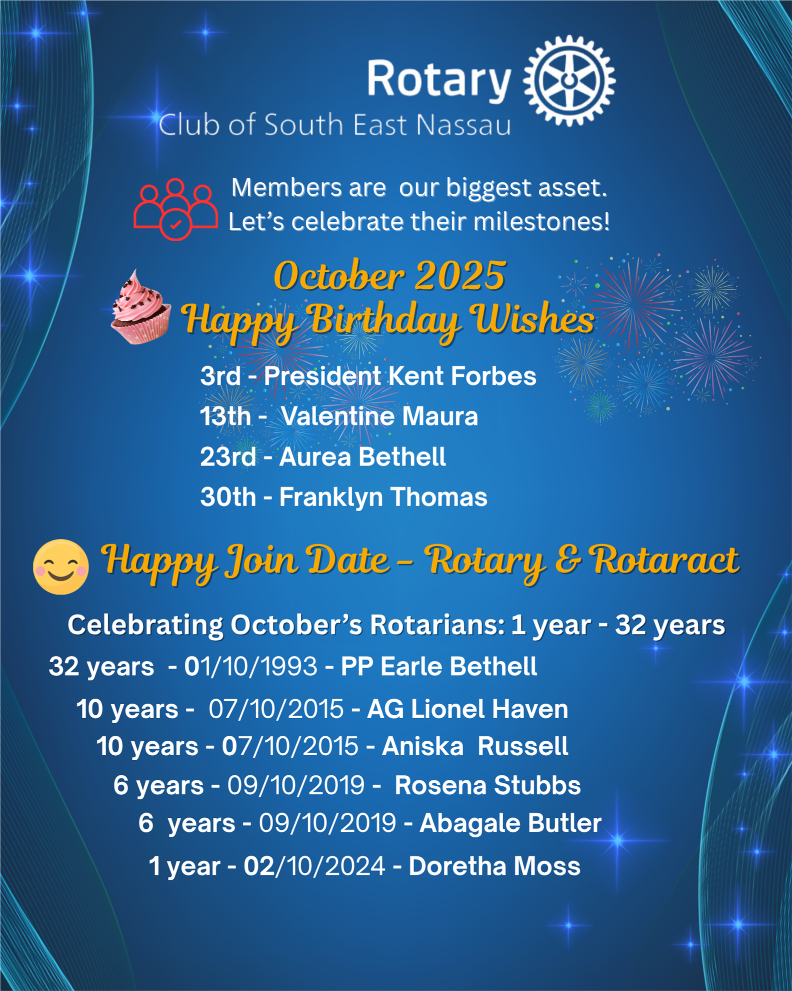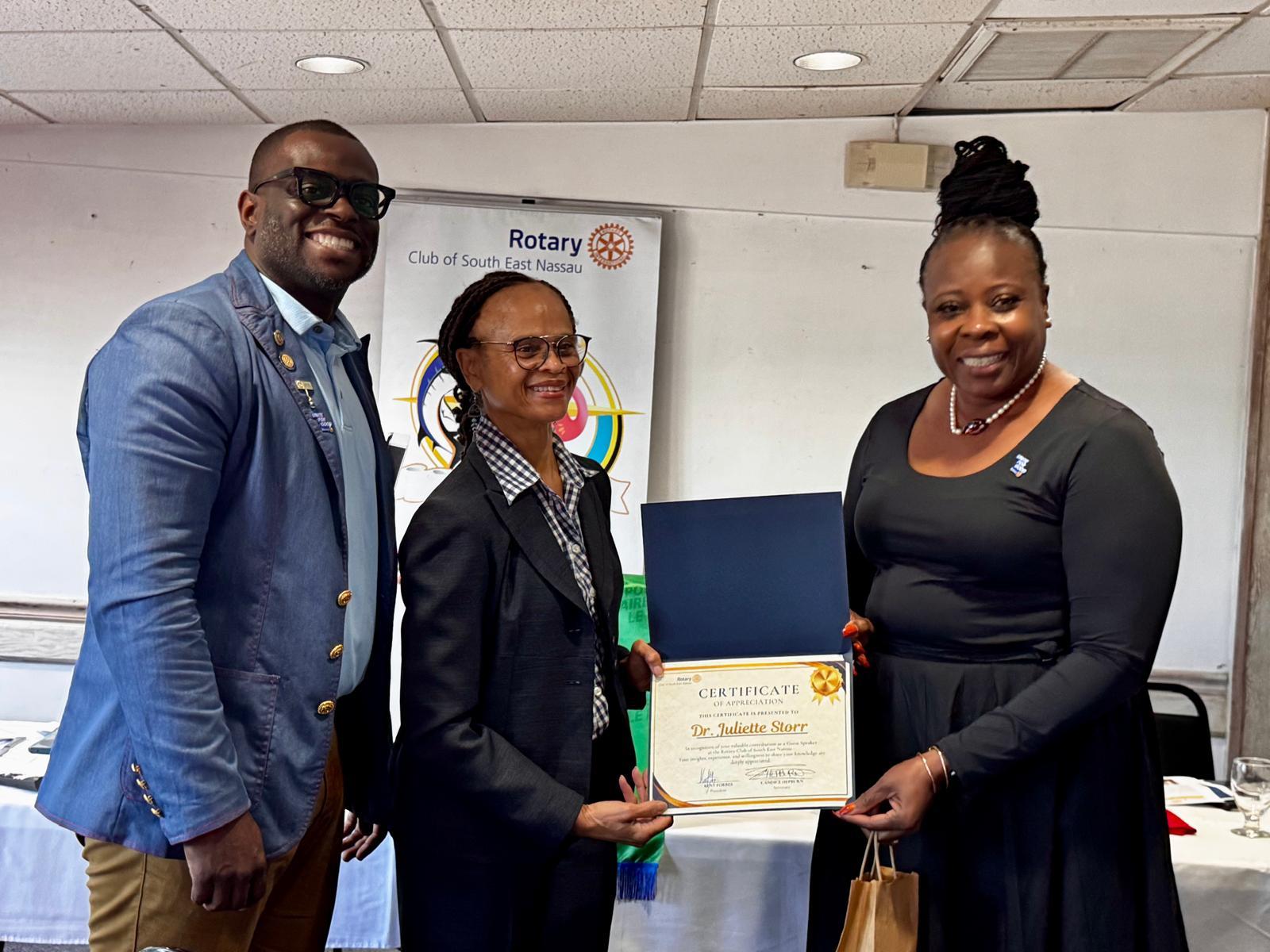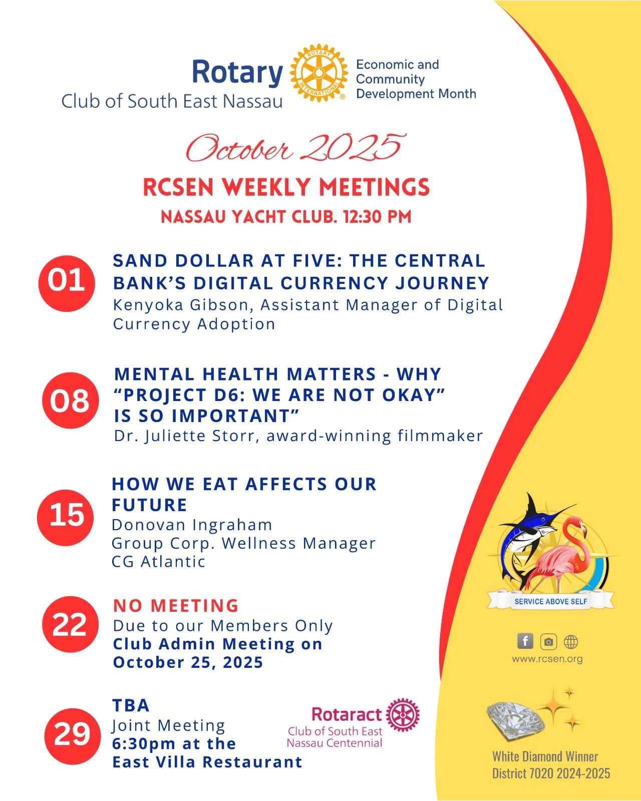 Our guest speaker last week was Dr Juliette Storr, who discussed the importance of mental health in our society. She focused on the impact of Hurricane Dorian on the survivors and the D6 project and documentary "D6 Project: We Are Not Okay. The film premieres on October 18, 2025 at the Atlantis Theatre, Paradise Island.