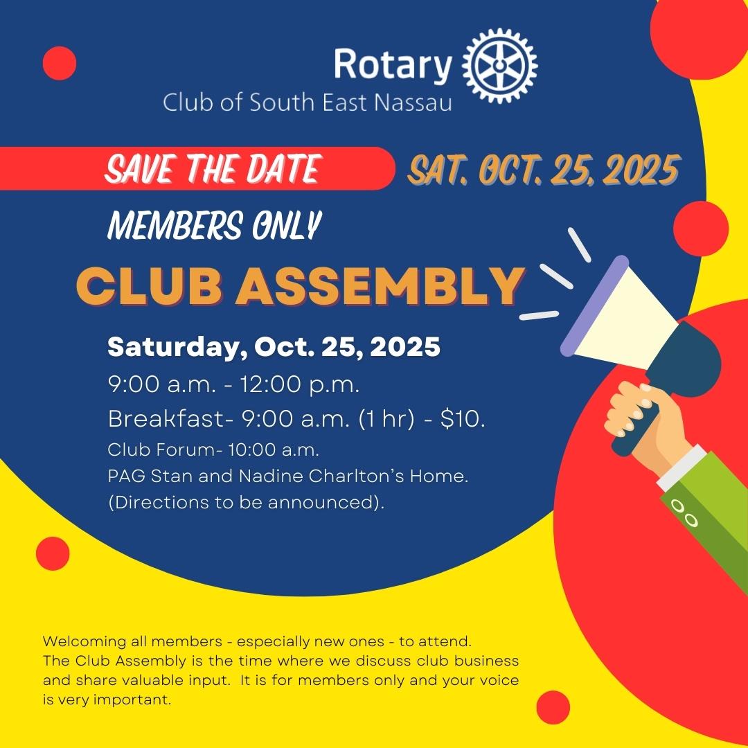 Monthly reminders and updates on the collective progress will be provided by the Rotary Club of South East Nassau.